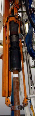 The weight of the casing is borne by the central pipe of the top drive; thus a heavy duty elevator and elevator link are not required.
